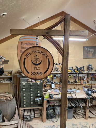 Our Roadsigns are built from 2 full size barrel heads to create a double sided effect. The barrel heads are then wrapped in 2 barrel hoops and coated with heavy outdoor rated finishes.